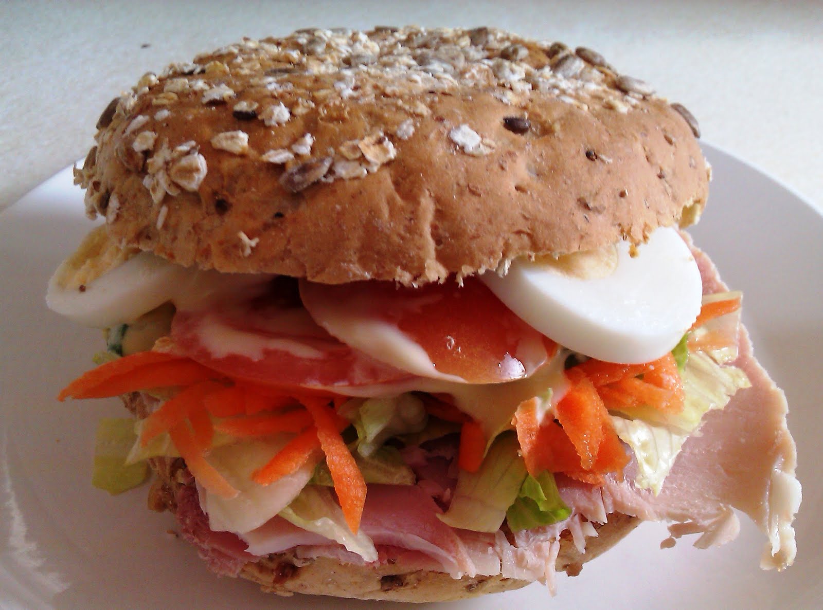It's been a while since I've posted a quick lunchtime bite, so here is a sandwich from Megabites in Rothwell. Ham and sliced egg salad on an oatmeal roll.