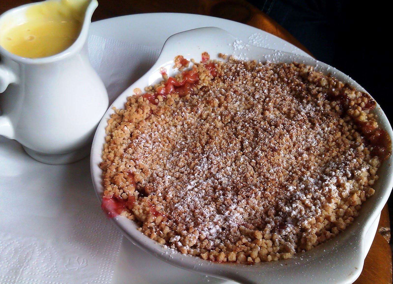 We shared a pudding, which was a good job as it was gargantuan, a rhubarb and apple crumble (£5.50) easily suited for two. The crumble was a little bit dusty, more butter please, but the filling was good. Not overly sweetened, letting the tartness of the fruit shine through and mingle well with the creamy custard.