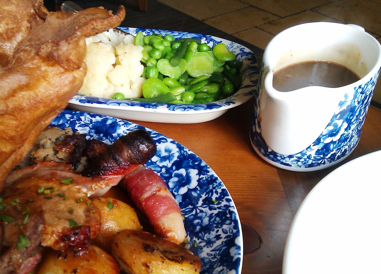 The first things to note are the Yorkshire puddings! Look at them. They unnerved me a little, putting me in mind of The Blob. Fortunately I think the heat had killed them off before they had chance to escape the oven and wreak havoc, but I made completely sure by smothering the bastards in gravy and eating them.